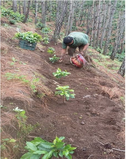 in 2012, we began to plant coffee trees under the pine trees, thus establishing El Porvenir